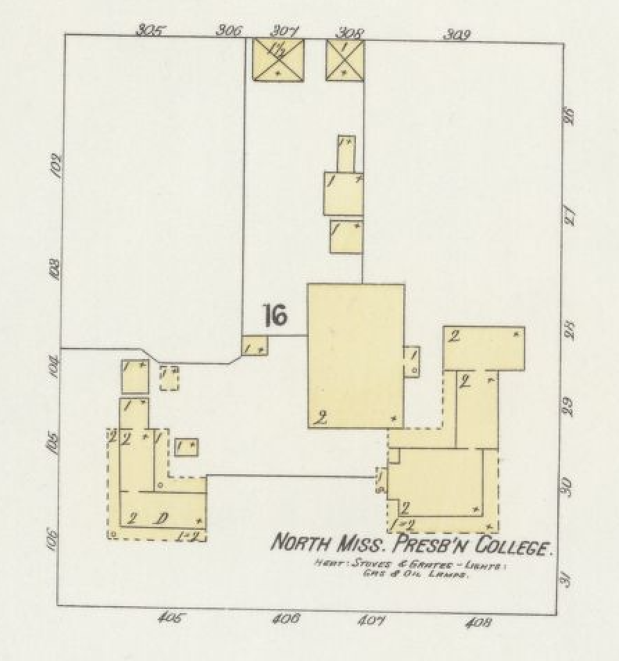 August 5, 2020 Mississippi Synodical College (1864) 892 × 952 1897 1897 Sanborn Map. Two story additional can be seen to the west of the Watson House. Hull House becomes part of the College.