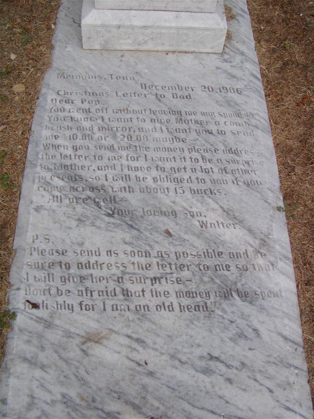 The McGuirk family was devastated by the early deaths of John in 1871 and Louisa in 1872. The McGuirk House was rented out to various other families for the next several years, including the Mattison and Smith families. Another tragedy occurred in the early 20th century, when Robert Walter McGuirk Jr. (1892-1907), John and Louisa’s grandson, died tragically at age 15 in a Scarlet Fever outbreak in Memphis, Tennessee. Robert’s devastated father had the last letter he received from his son inscribed into his tombstone at Hill Crest Cemetery, and the tombstone remains a popular grave at the cemetery today.